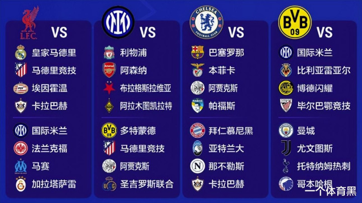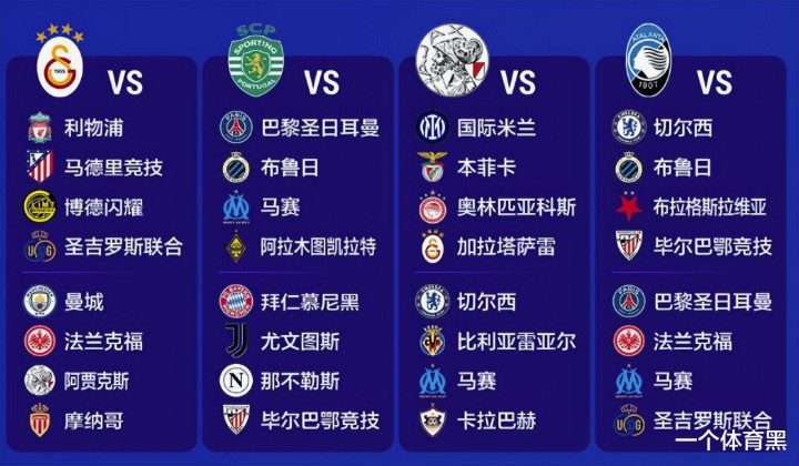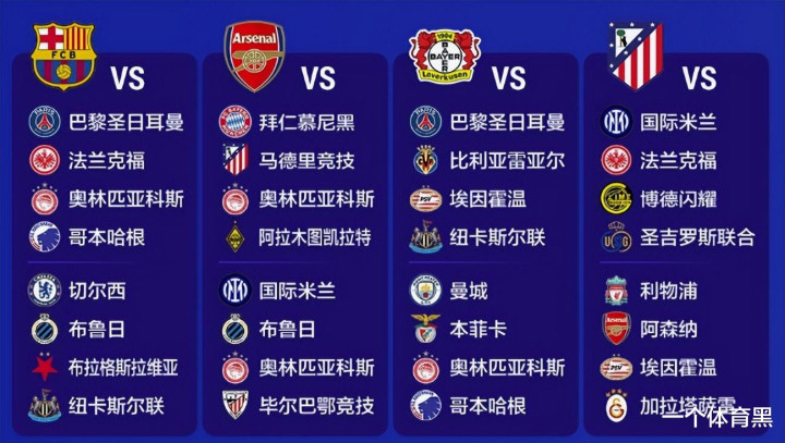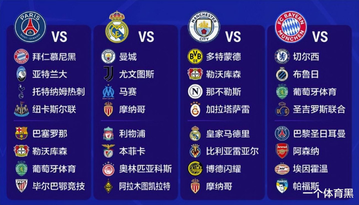 今年欧冠联赛阶段的抽签结果已经全部出炉,一共有36支球队参加,每支球队会与其他8个不同的对手进行单回合较量,其中4个主场,4个客场。而主客场也全都有抽签产生,以下是完整对阵情况。